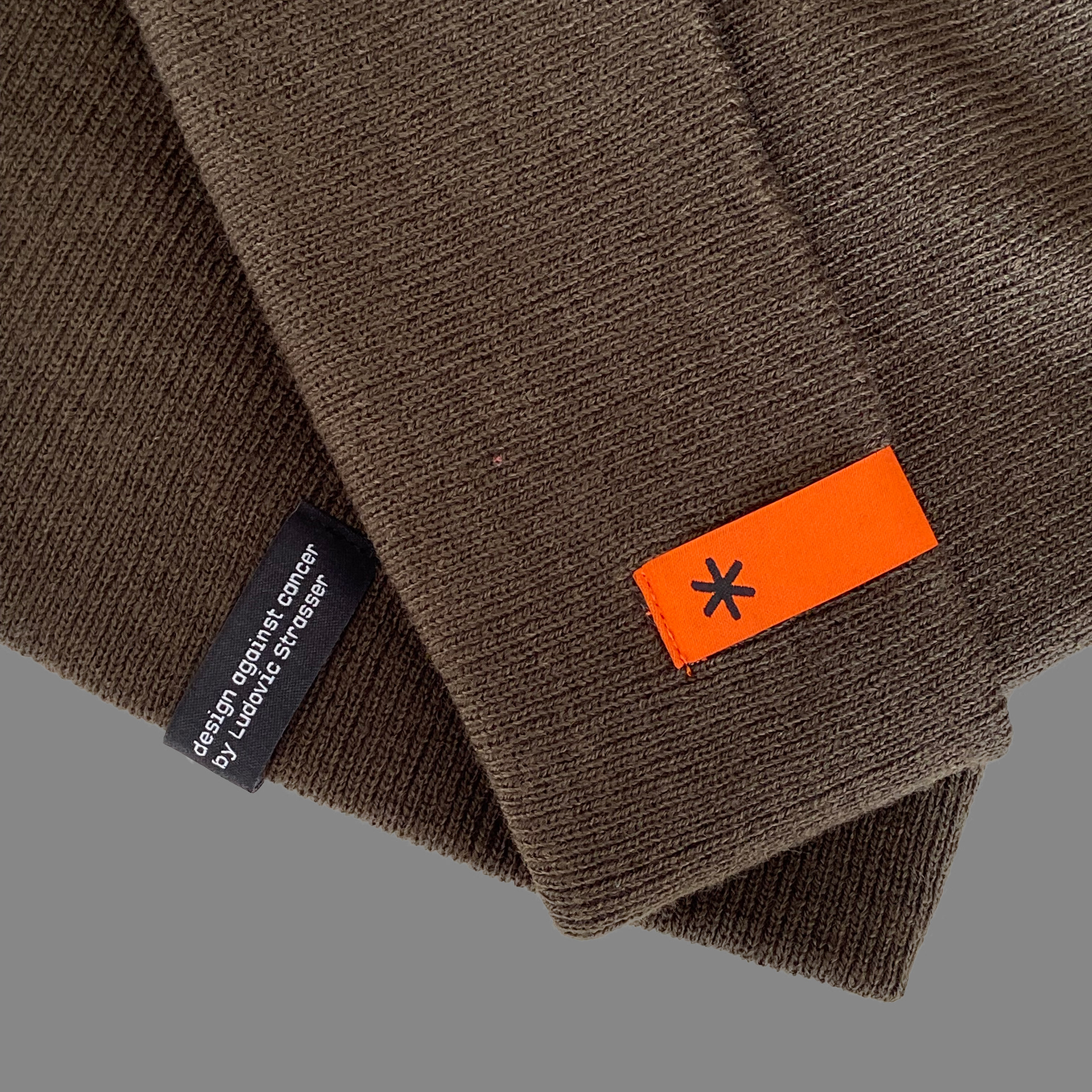 Bonnets réalisés pour l'association In Rust we trust, design against cancer. Produits par YE-TEXPROD, Lausanne.