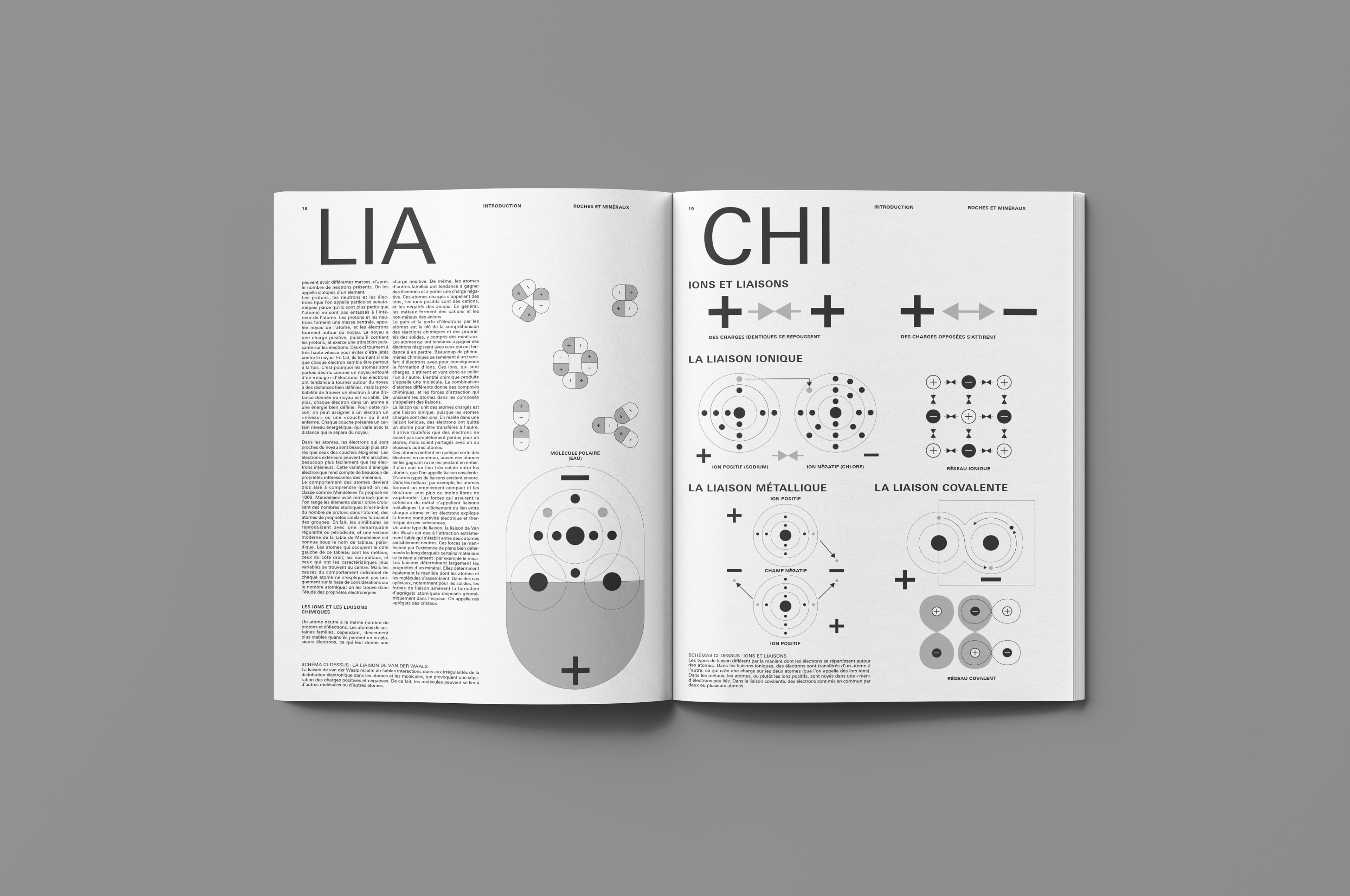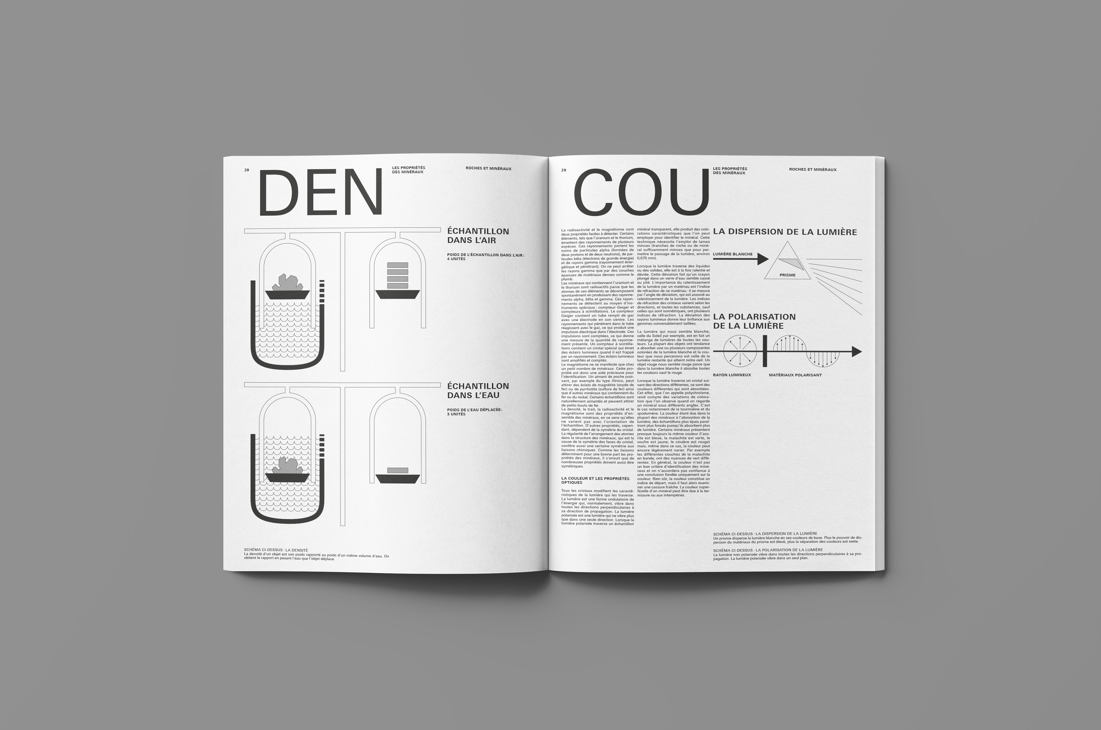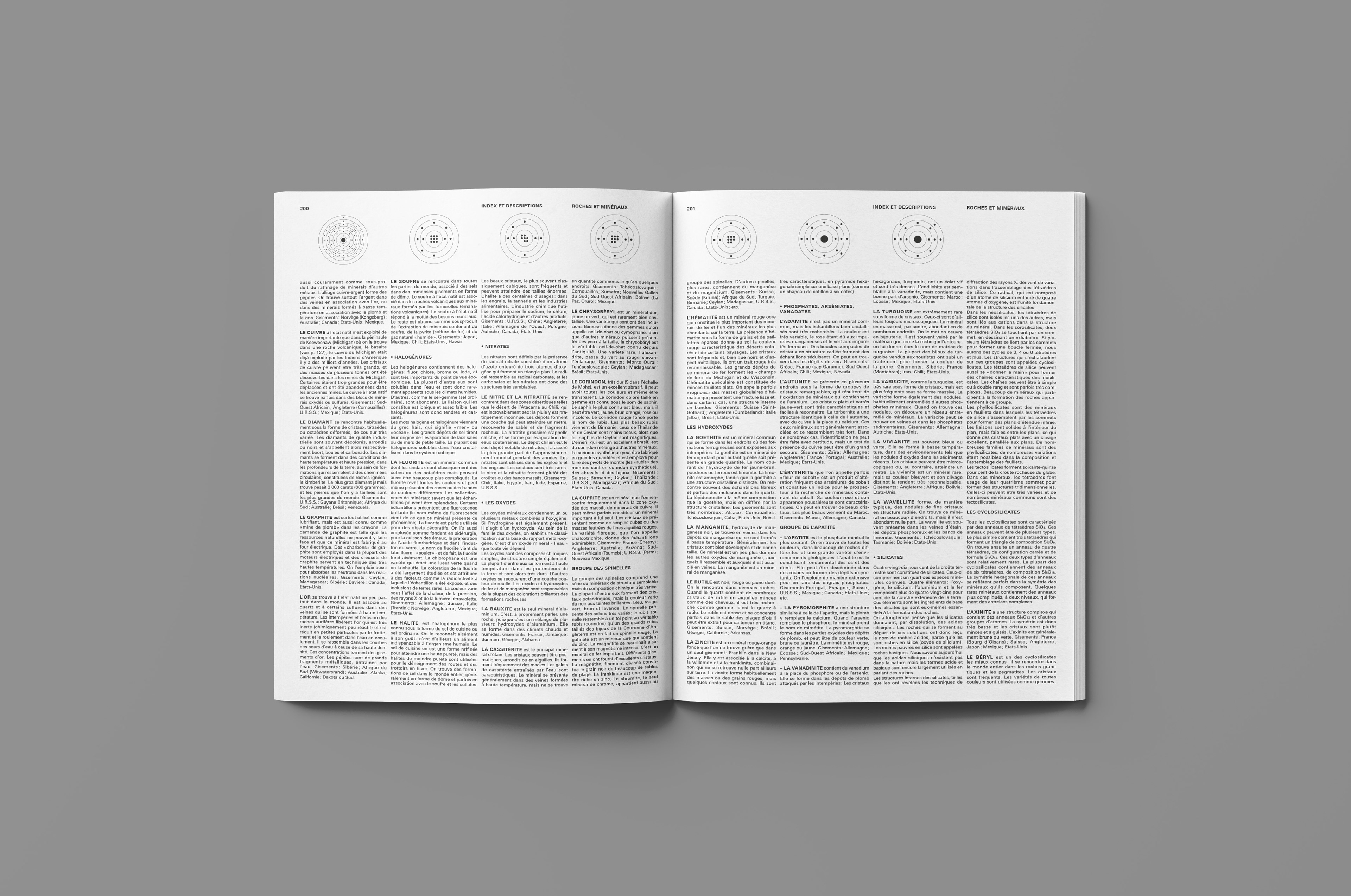 Redesign d’un livre existant traitant de roches et de minéraux. Les schémas ont été redessinés et la structure modifiée.